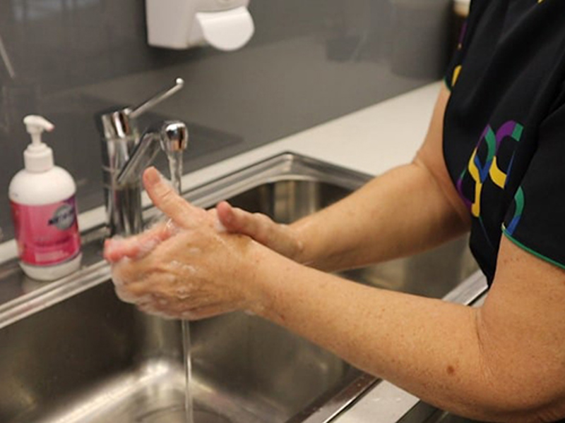 Pastikan ini menutupi seluruh permukaan tangan Anda termasuk telapak tangan, punggung tangan, dan sela-sela jari, lalu gosokkan kedua tangan Anda hingga kering (sekitar 20 hingga 30 detik).